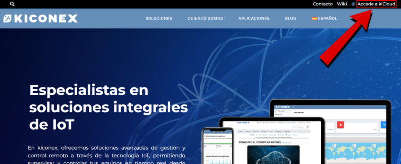 En la página web se encuentra toda la información necesaria sobre el producto. Para poder entrar en la plataforma de supervisión, pulsar sobre el enlace “Accede a kiCloud”, situado en la esquina superior derecha de la web: