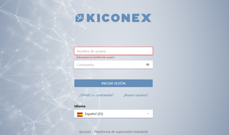 Aquí se deberá introducir el usuario y contraseña aportado por kiconex. Una vez hecho esto, pulsar en “Iniciar sesión” para ingresar en la plataforma.