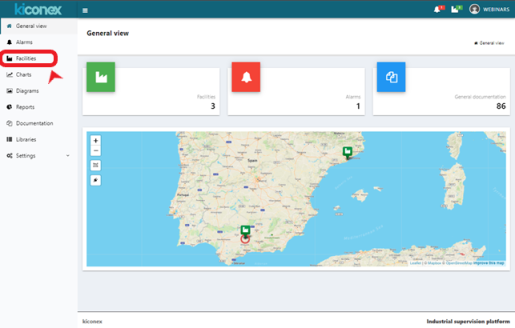 Se puede acceder de dos formas: desde el menú lateral o desde el menú principal donde indica el número de instalaciones a las que tenemos acceso: