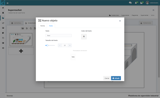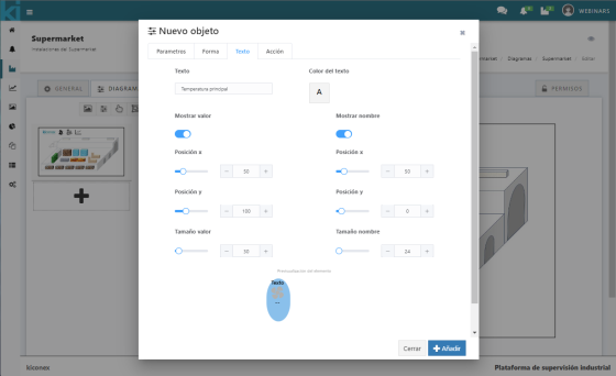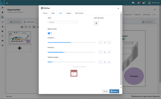 En ella podrá configurar un texto que necesite añadir al diagrama, el tamaño y el color. Al final verá la previsualización del elemento.