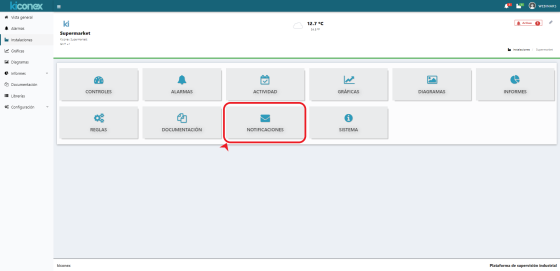 Para configurar las notificaciones, es necesario acceder a la pestaña NOTIFICACIONES dentro de la instalación, como muestran las imágenes siguientes: