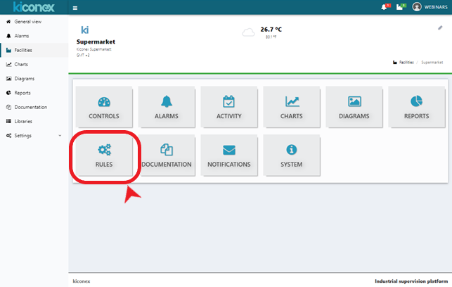 Acceso a reglas a partir de las pestañas superiores de la instalación.