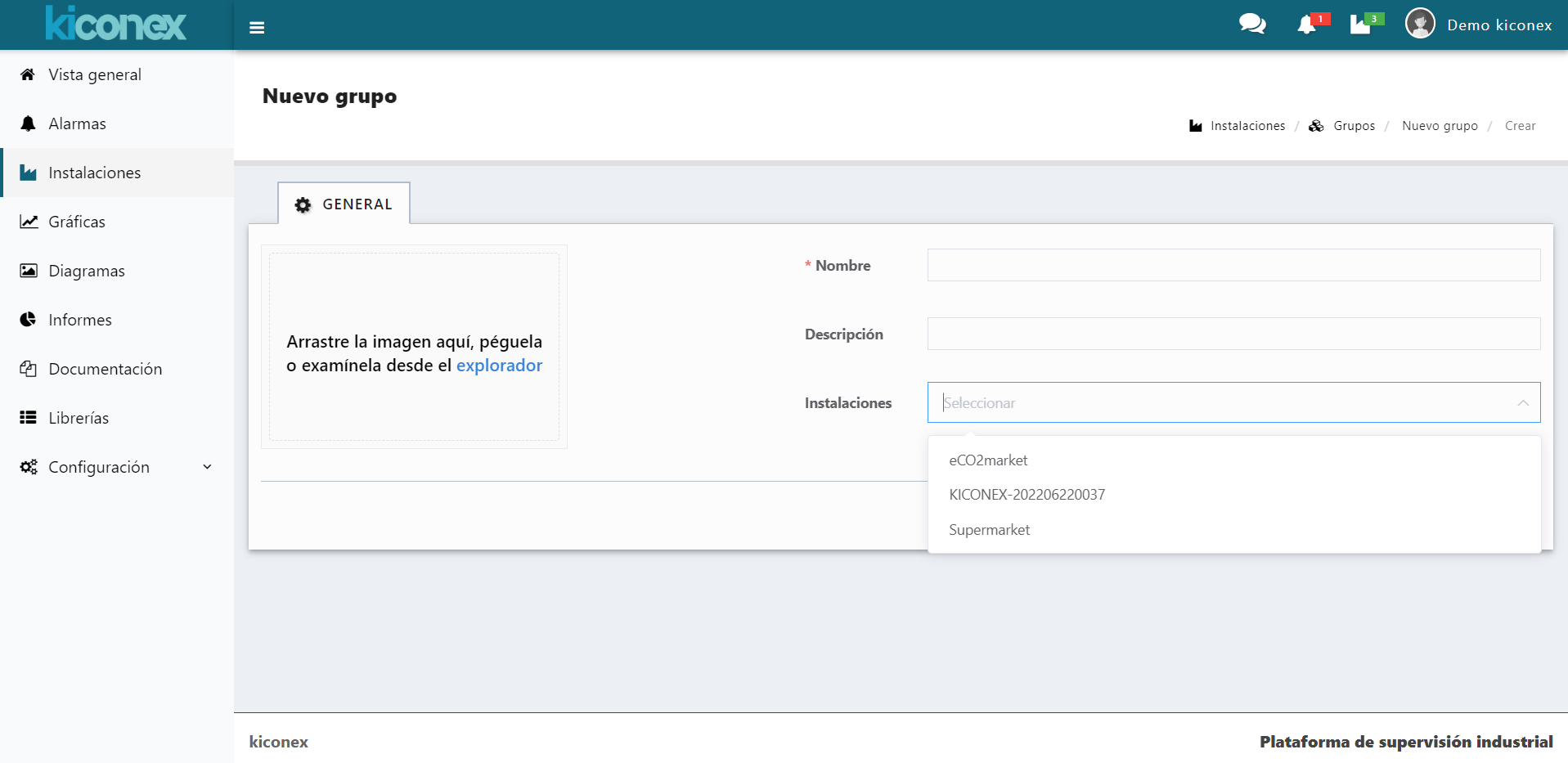 Menú editar grupo de instalaciones
