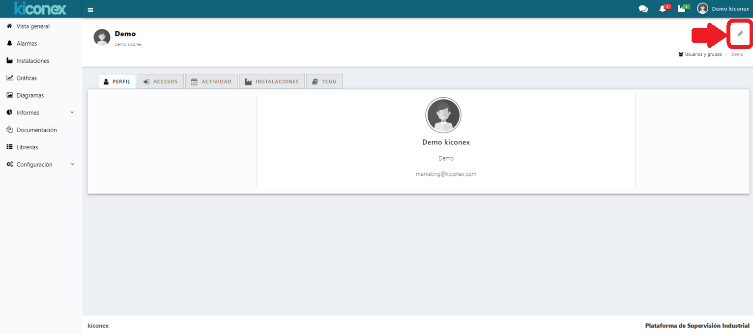 Usuario - señalado el icono de edición