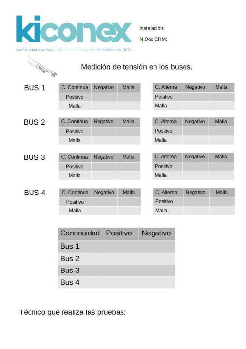 El bus con tensión NO se debe conectar al bornero del cuadro o al kiBox, esta acción puede derivar en avería del kiBox. En caso de que se realice una sustitución se deben comprobar los buses antes de conectarlos.