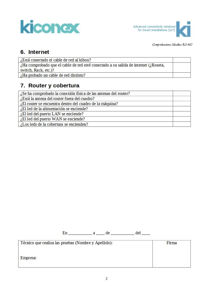 Se debe comprobar el cableado Modbus RTU-RS485 tras la puesta en marcha de la instalación y cuando se comienzan a visualizar problemas de comunicación sobre la plataforma.