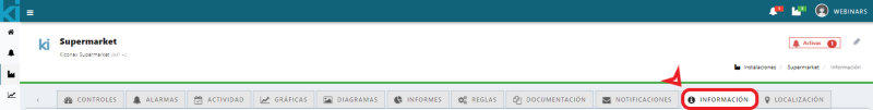 Para acceder a la pestaña de información puede acceder a través del menú principal o de las pestañas principales.